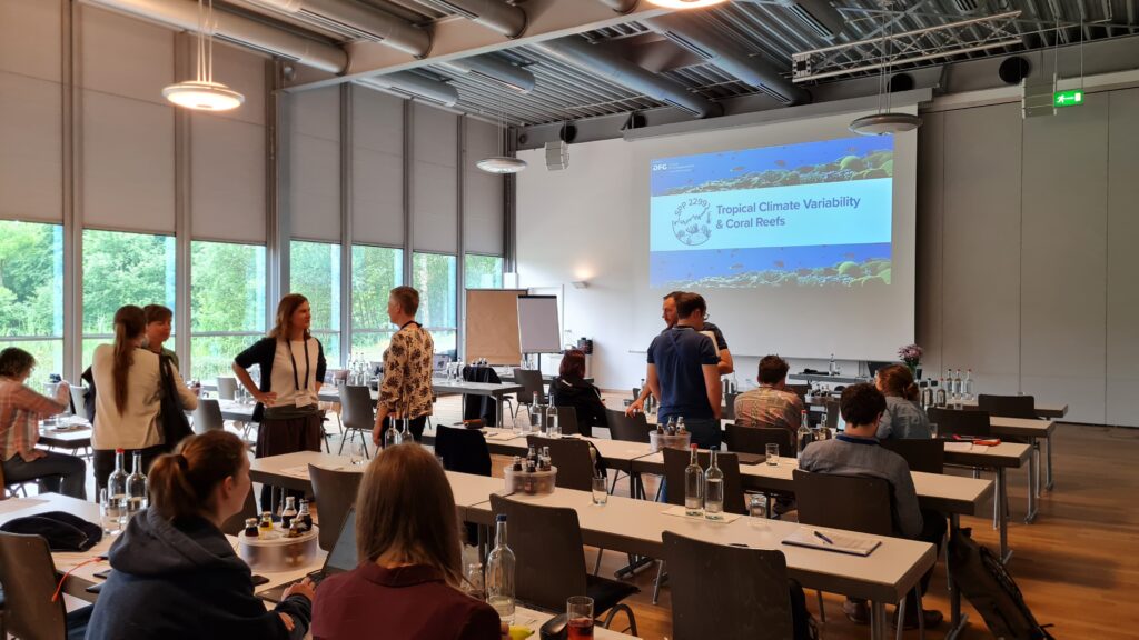 Researchers from the DFG Priority Programme “Tropical Climate Variability & Coral Reefs” (SPP 2299) met in Bremen over the week of the 30th of May to the 2nd of June. The topical meeting was focused on thermal stress signatures in the geochemistry of coral skeletons and the role of temperature variability in corals susceptibility to bleaching. The Bremen coordination team welcomed 50 colleagues from the 15 partner institutions participating in the programme, also welcoming several invited international guests. The topical meeting, as a programme with the DFG, was also joined by DFG Programme Officer Ismene Seeberg-Elverfeldt.