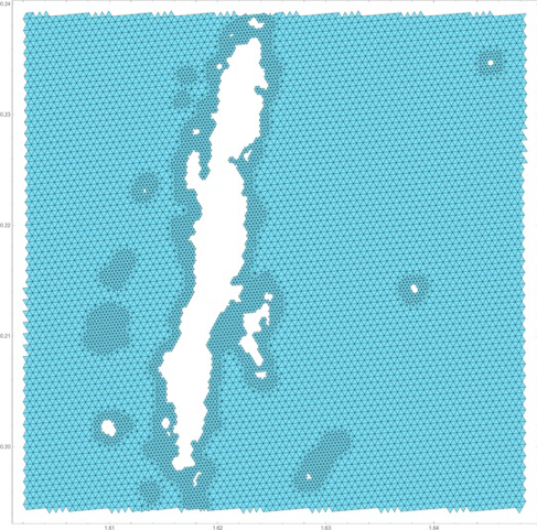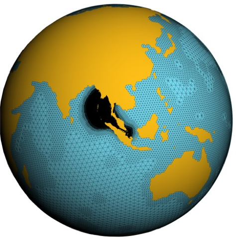 The structure of the irregular grid used in ICON-O with increased resolution in the Andaman sea.